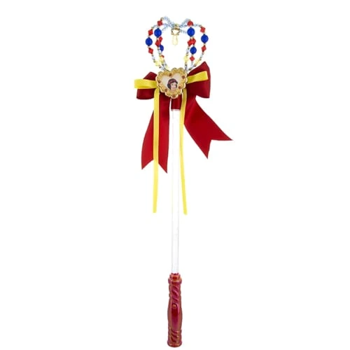 The perfect accessory for your princess, the Magical Light-up Snow White Wand is topped with a Snow White cameo, a crown of iridescent beads, and satin and organza ribbons. Press the button and red crystals light up. Press it again and they twinkle.
