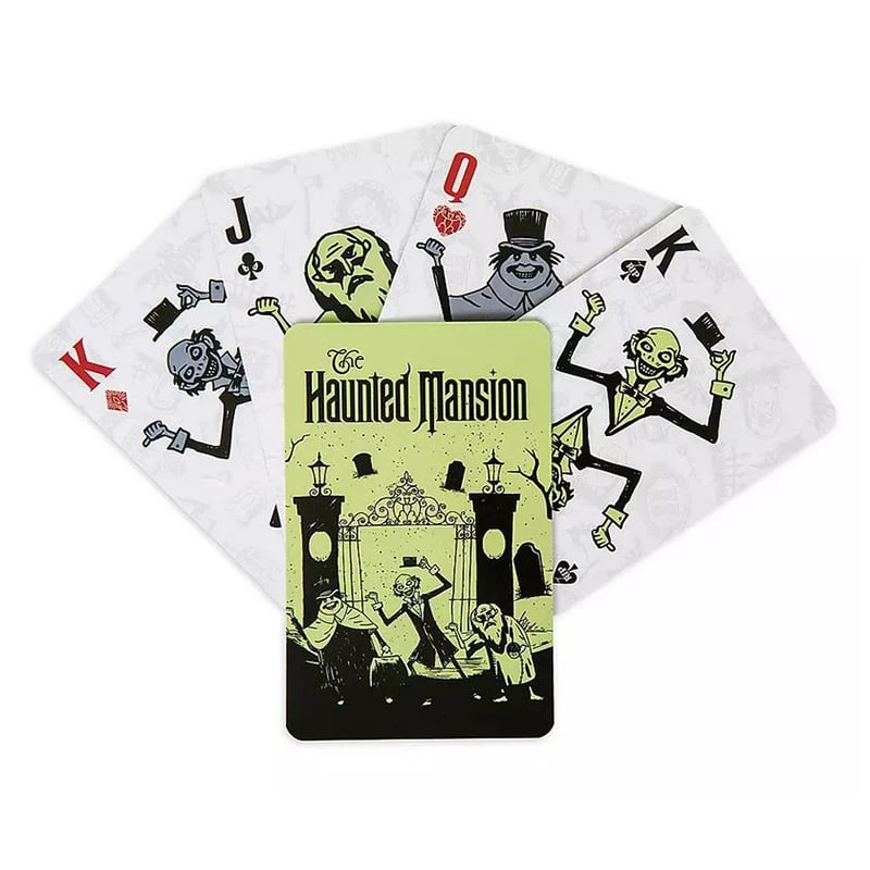 Dearly departed souls may wear a natural poker face while dealing from this delightfully dreary deck of playing cards themed to sober spirits dwelling at The Haunted Mansion. Contains 52 cards, suitable for most mortal card games.