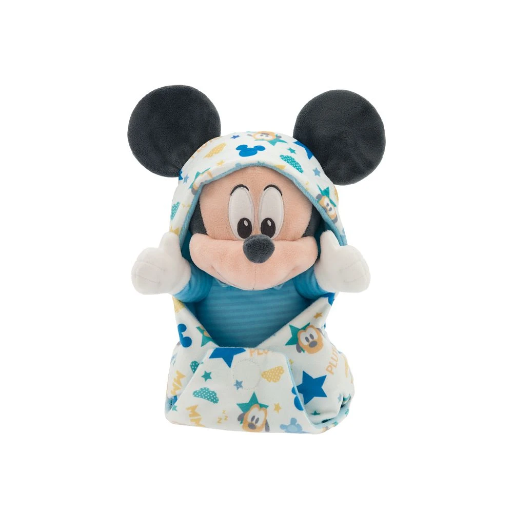 This Disney Babies Mickey Mouse is a snuggly plush superstar. Baby Mickey wears adorable striped pajamas and is all wrapped-up in his reversible soft velour swaddle blanket with self-stick fabric closure. Why? Because he likes you!