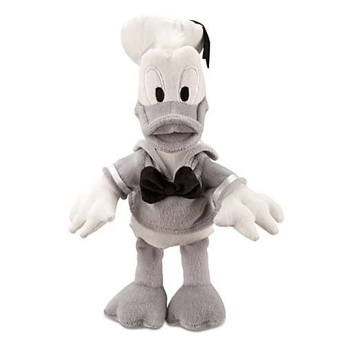 Soft-stuffed Donald Duck takes a step back in time into the black-and-white cartoon days! Even without his colors, Donald still has plenty of personality, so give the cranky duck pal a great big hug!