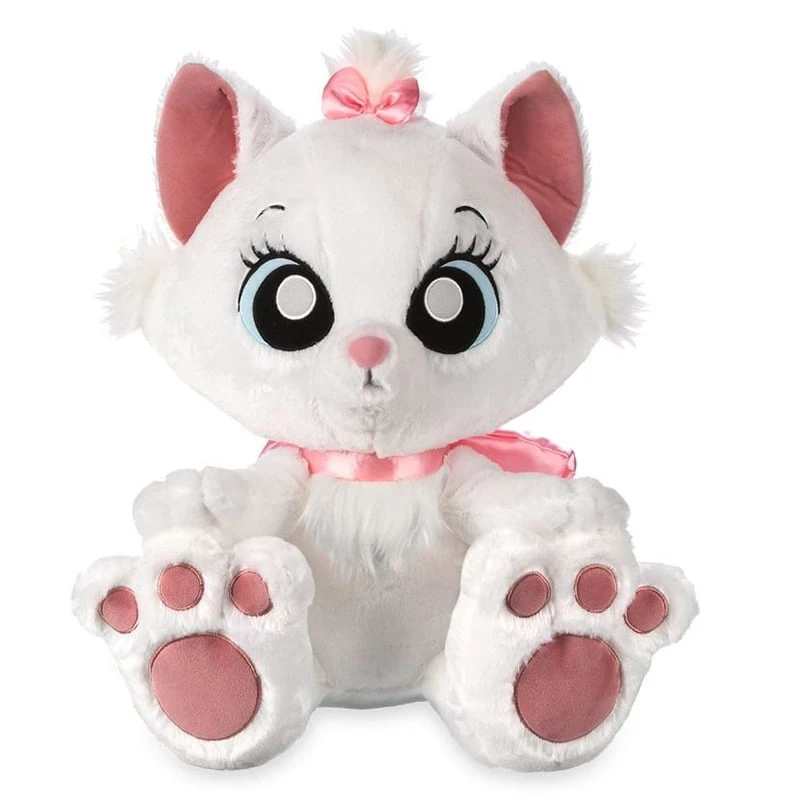 This purr-fectly sweet Marie is ready for some hugs. This plush pretty Aristocat is soft and fuzzy with a pink bow on her head and an oversized bow on her back, plus embroidered features and dangling oversized feet.