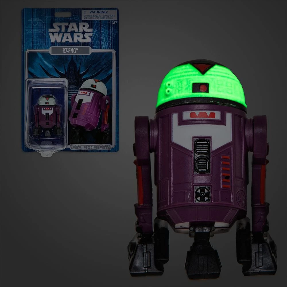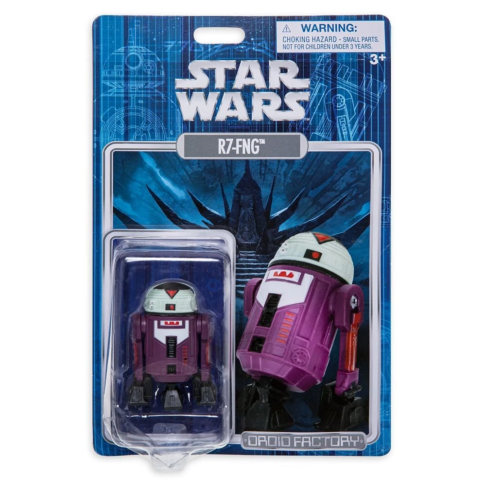- Fully sculpted R7-FNG droid figure