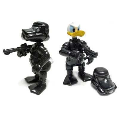 In celebration of the 30th Anniversary of The Empire Strikes Back, is this exclusive, Limited Edition Donald Duck as a Shadow Trooper Action Figure! It is part of the Disney Star Wars Action Figure Series, so it fits in with the Series 4 Action Figures as a Limited Edition Completer. Limited to “5000” pieces, it is the rarer action figures in the series. The other completer for the series is the holographic emperor Stitch Palpatine LE 1980 (sold separately).