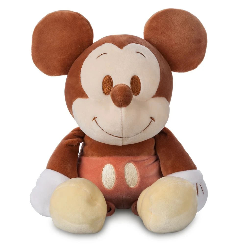 A cuddly cutie is here to offer cozy comfort. This Mickey Mouse plush features a soothing color palette of brown body, pale red shorts, and pastel yellow shoes and provides endless relaxation for you at home and beyond with its specially weighted body!