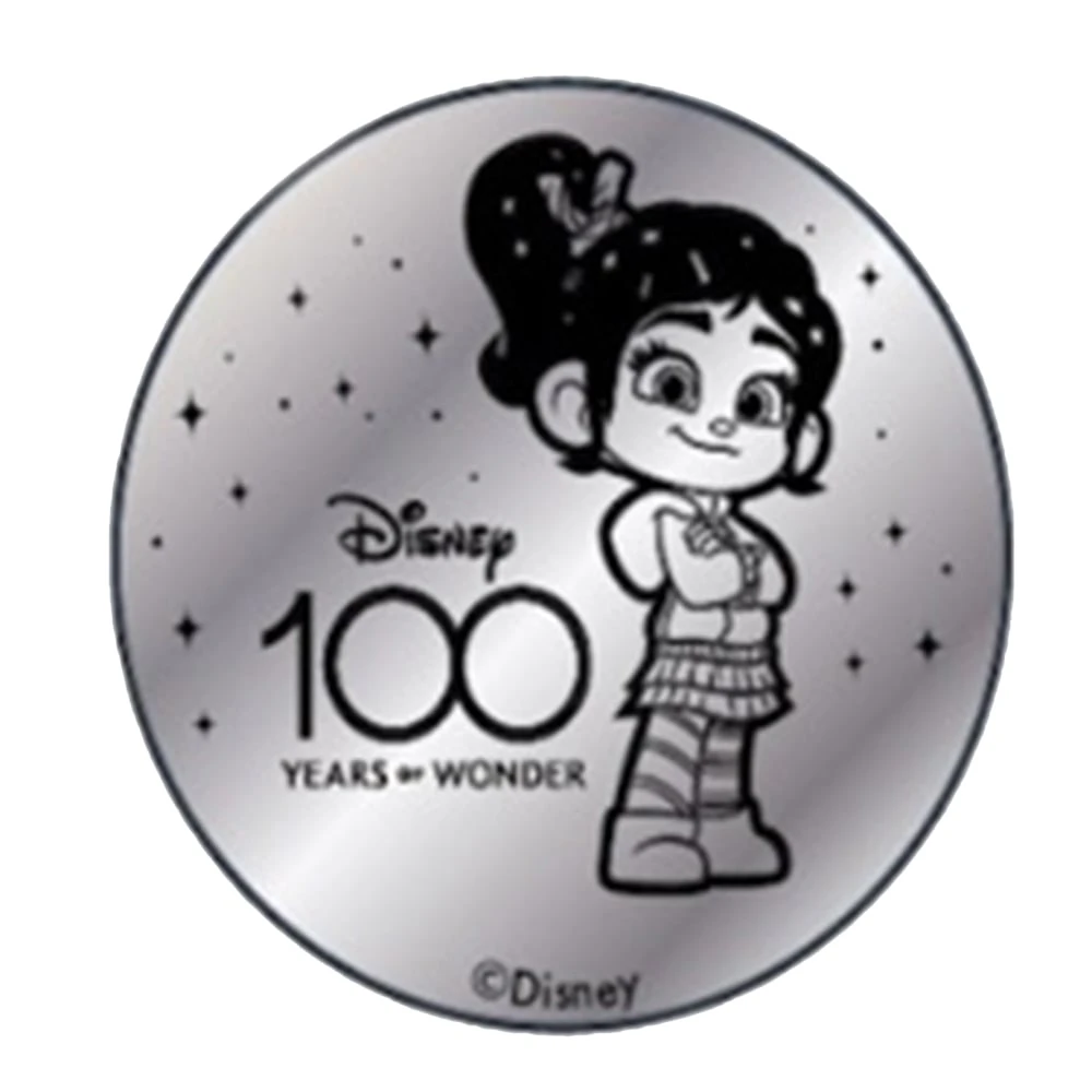 - Says ”Disney 100 Years of Wonder Walt Disney World” on one side and ”Disney 100 Years of Wonder” with the character on the other