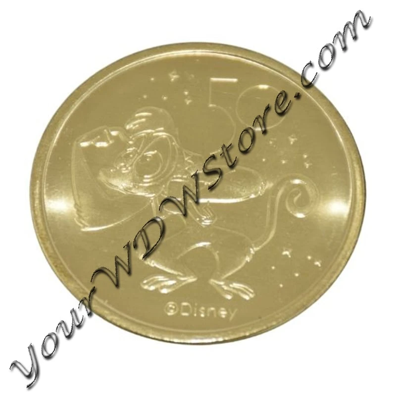 - Says ”The World’s Most Magical Celebration Walt Disney World” on one side and ”50” with the character on the other