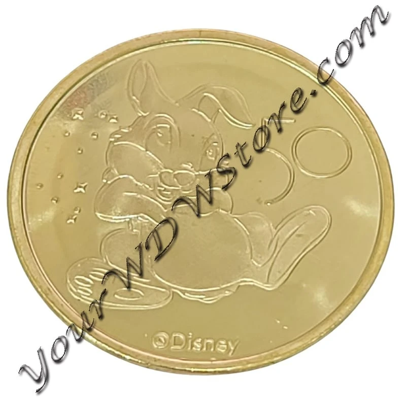 - Says ”The World’s Most Magical Celebration Walt Disney World” on one side and ”50” with the character on the other